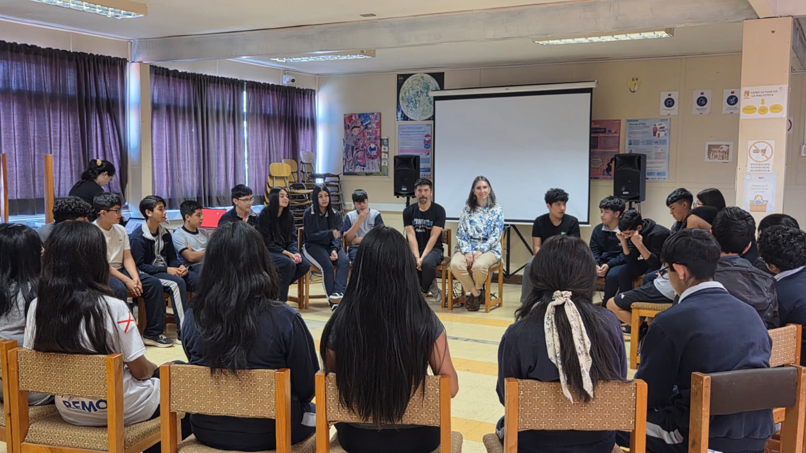 La actividad se desarrolló en el horario de 09:40 a 11:10 horas, correspondiente al segundo periodo de clases, y tuvo como objetivo generar espacios de reflexión en torno a una problemática de alta relevancia en el contexto escolar actual: el ciberacoso.
