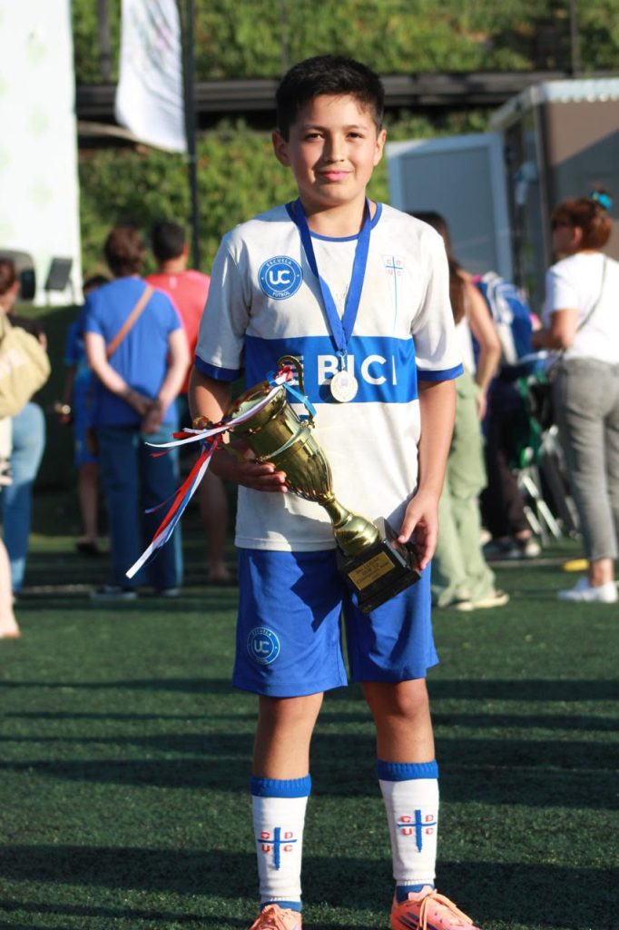 El estudiante Sebastián Ochoa Soto, de 7° básico, participó en la final nacional del campeonato Champions Kids, realizada en la ciudad de Santiago. Representando a la Universidad Católica filial Valdivia, Sebastián y su equipo lograron un destacado 3° lugar en la categoría Sub 12, enfrentando a delegaciones de diversas regiones del país.